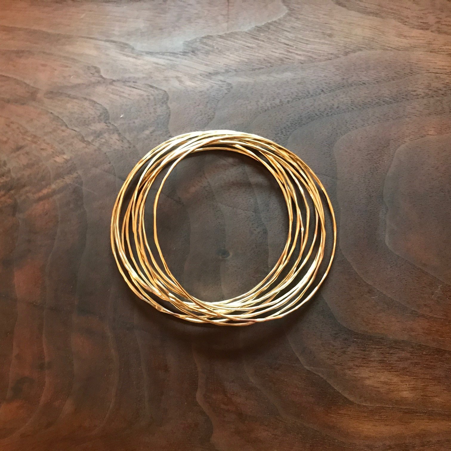 The perfect thin hammered golden bangle for everyday wear, wear a single bangle or stack them up, they play well with others and glint in the sunlight