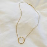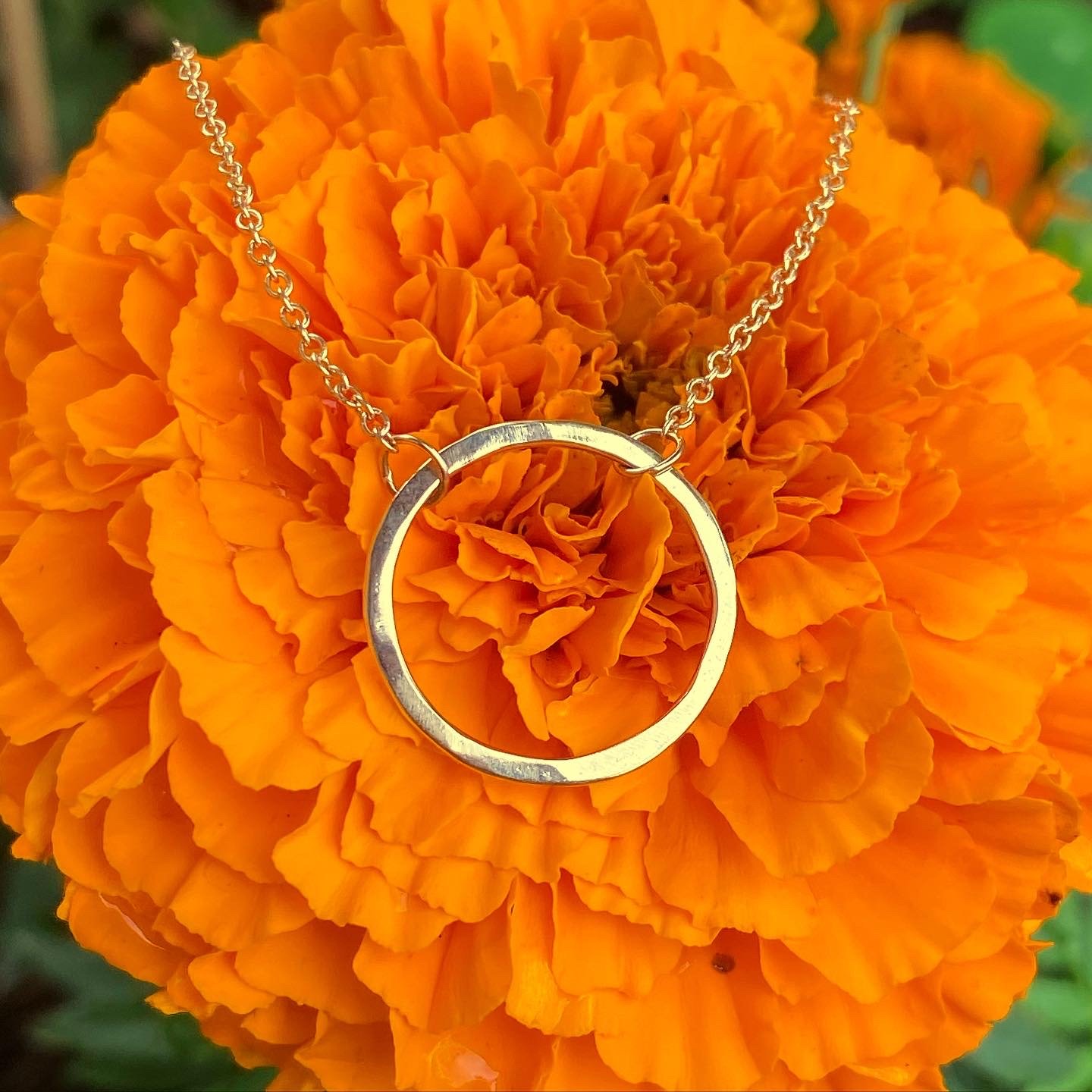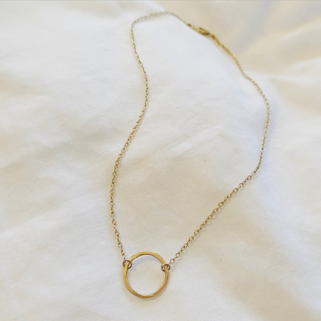 A 14k gold circle on a golden chain. Simple, beautiful. Whispers of new possibilities. hangs just below the collar bones