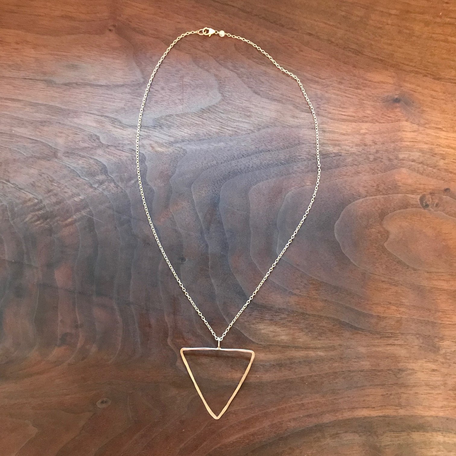 Hammered 14k gold triangle necklace, symbolic of water, heaven, a chalice, the womb. It is an ancient symbol of the divine feminine. on a gold chain, lobster closure