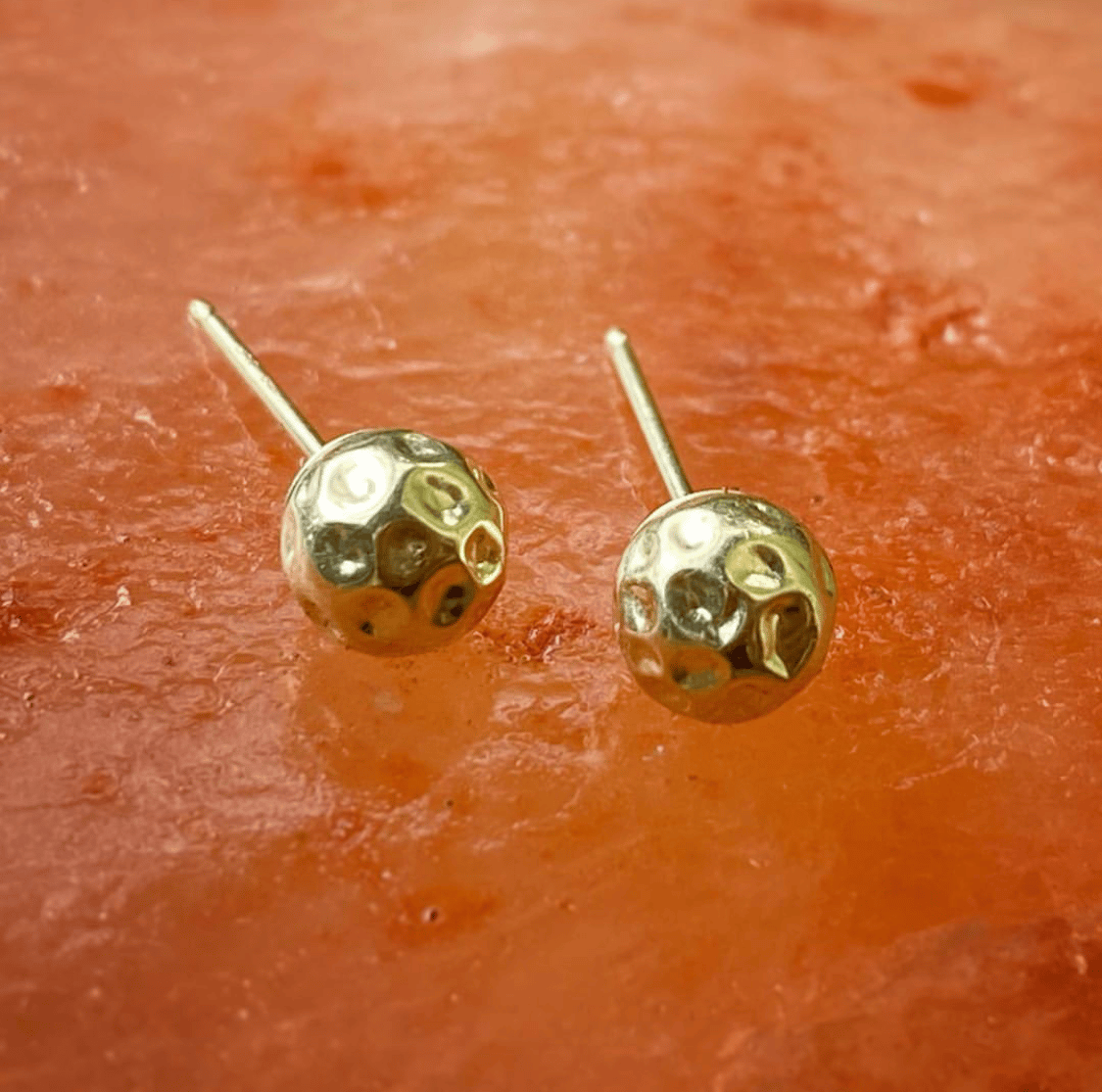Little 14k gold moon rock studs