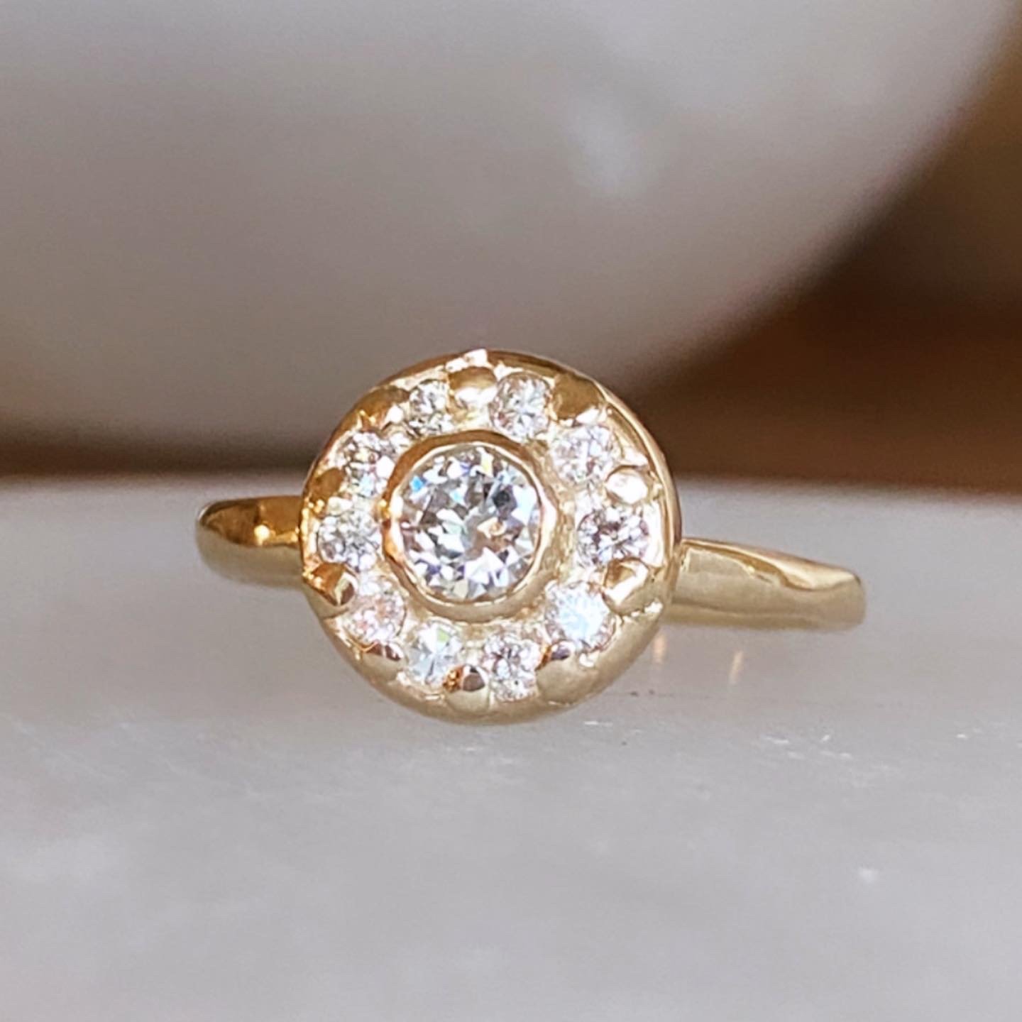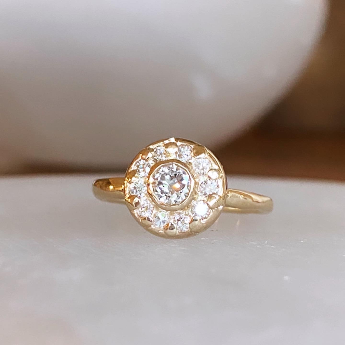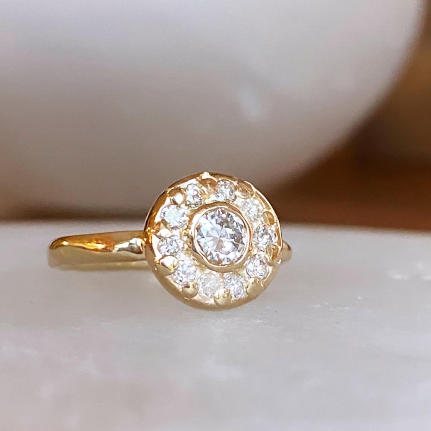 14k Gold perfectly imperfect halo ring handmade in Maui