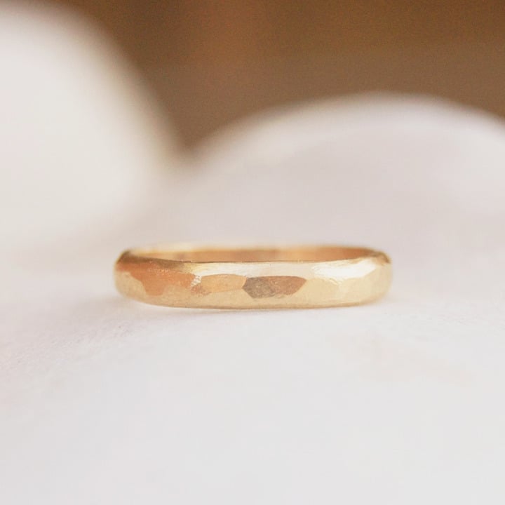 Nice and weighty 14k Gold ring Lovingly handmade with recycled metal Hammered to catch the light