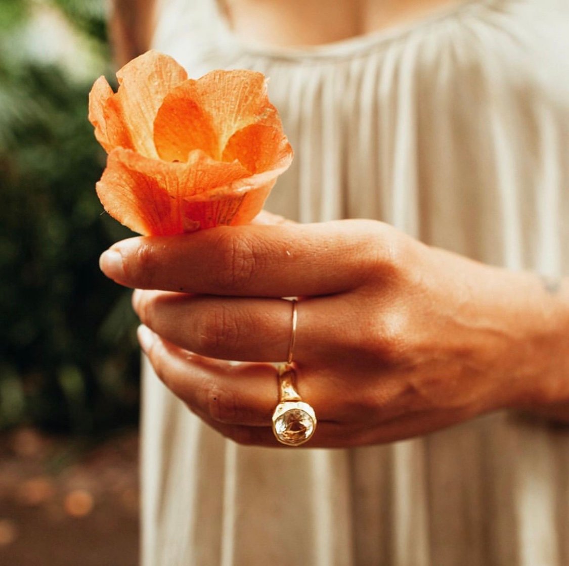 Solid 22k gold cocktail ring with Brazilian white topaz